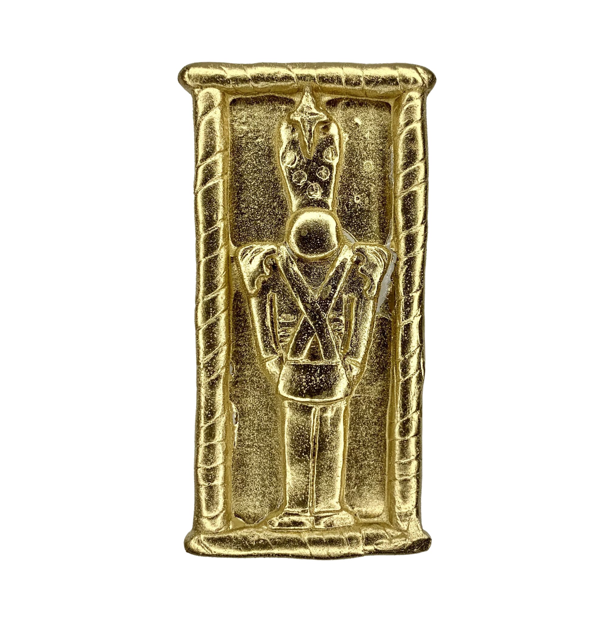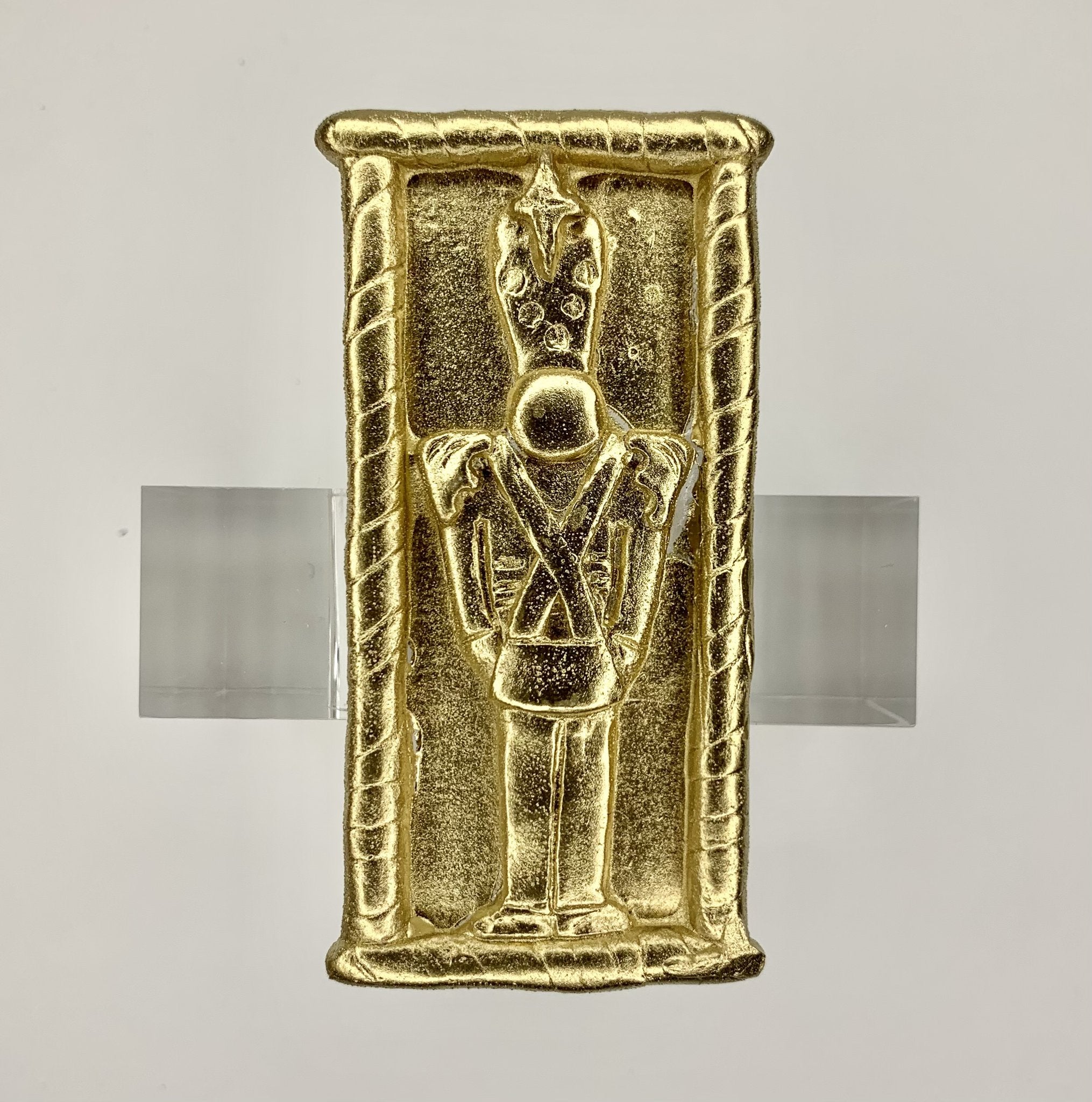 THESE GOLDEN TOY SOLDIERS ARE HANDMADE AND MOUNTED ON CLEAR ACRYLIC NAPKIN RINGS. HAND PAINTED GOLD LEAF.