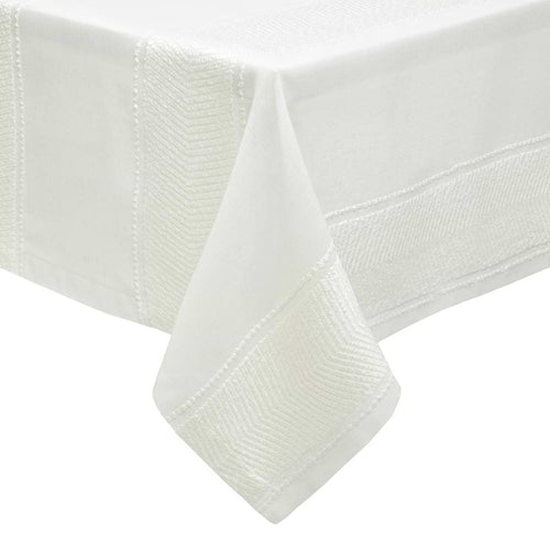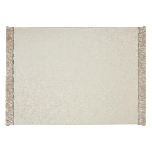 Linho Scalloped Rectangular Linen Mat, White & Platinum