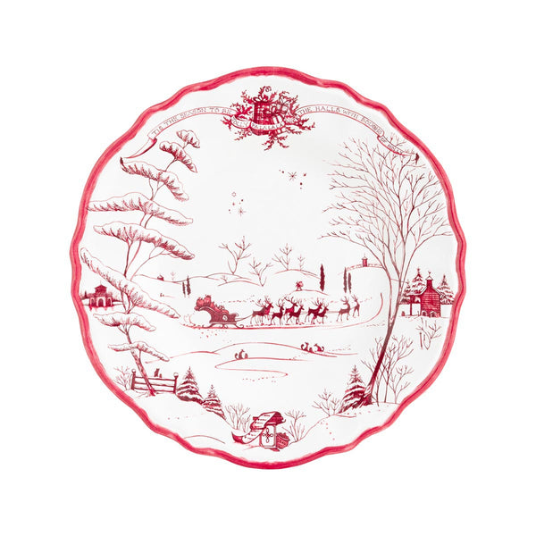 Perfect for a festive kids’ table or the intrepid outdoor winter entertaining enthusiast, our beloved holiday pattern by artist Deborah Sears is presented in shatterproof melamine! Featuring a scalloped ruby-hued border with charming seasonal greetings and our Country Estate in full swing with jolly celebrations. From kitchen to campfire, this durable set of dessert or salad plates is designed for easy entertaining, making the holiday season a dash merrier.