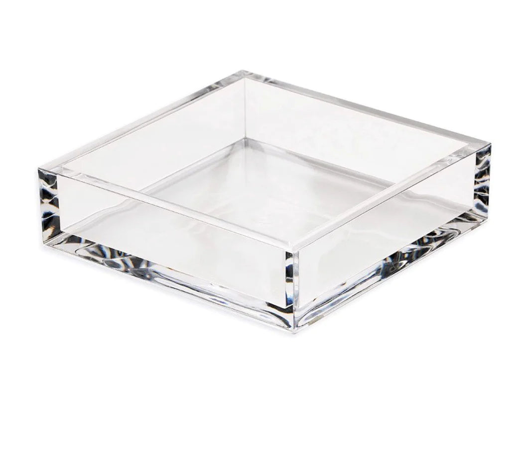 The Lucite Luncheon Napkin Tray by Tizo can be utilized with cocktail napkins or as an inspired accessory tray.