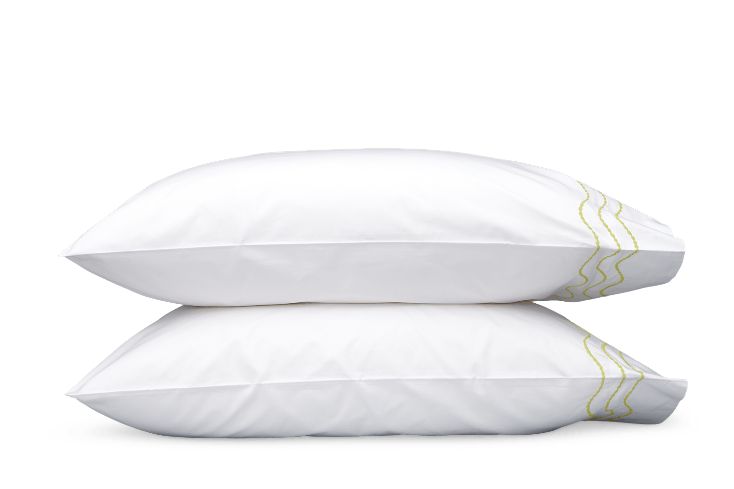 Rolling waves of pearl stitch detailing add subtle, shapely style to our white Sierra percale sheeting of 350 thread count long-staple cotton. Cheerful color adds just enough punch.