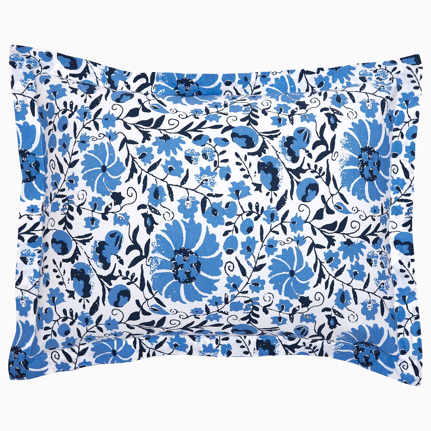 Inspired by a beatiful suzani, and John's many trips to Uzbekistan, this print features flowers in azure and indigo in classic shapes. 200 Thread Count. 100% organic cotton percale. Finely woven, durable & exceptionally soft.