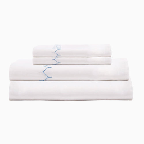 Stitched Light Indigo Organic Sheet Set, Full/Queen