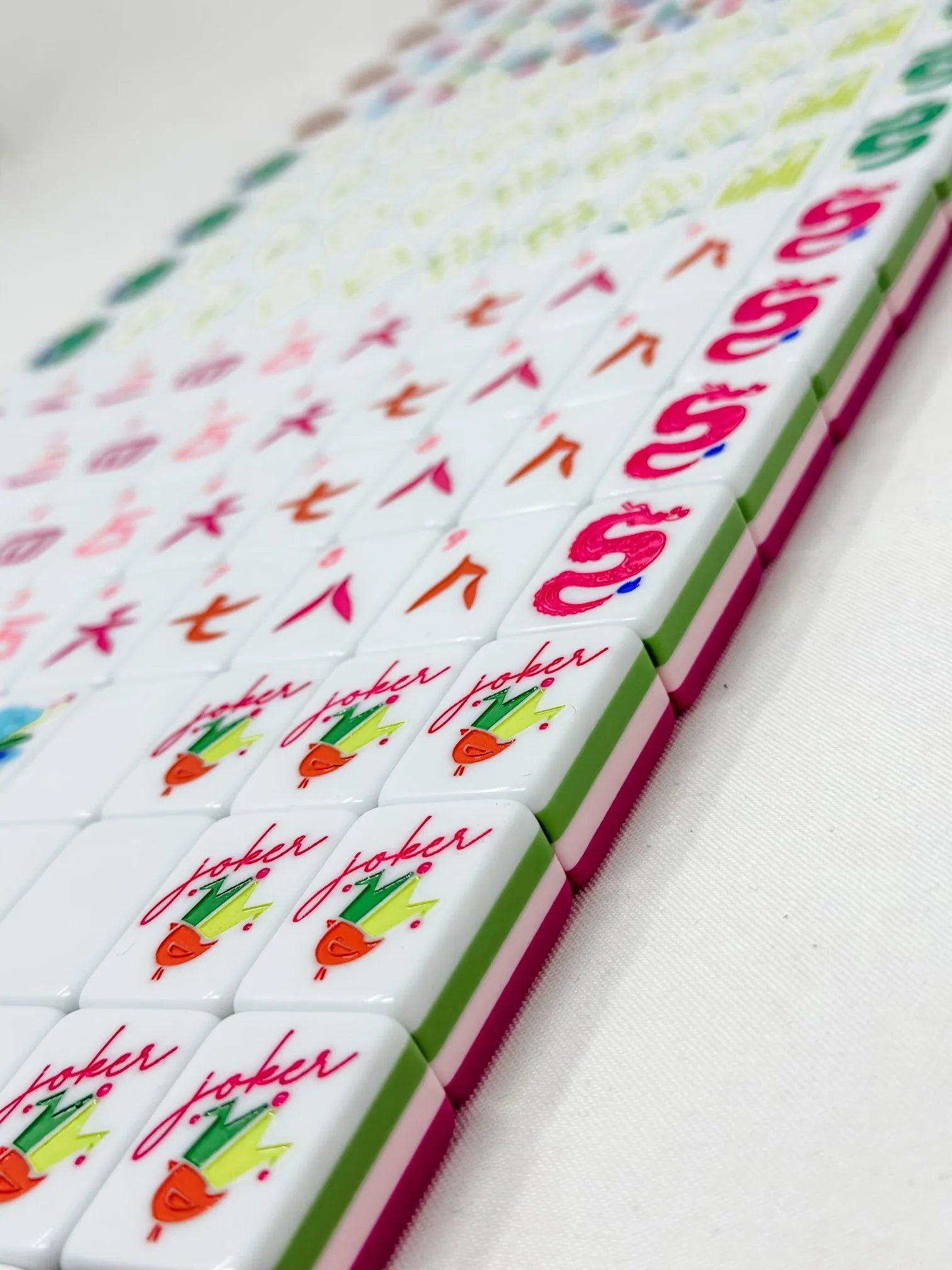 Introducing Dandy where timeless elegance meets vibrant flair. With a mesmerizing fusion of magenta, olive green, and baby pink tiles, Dandy brings a new level of sophistication to your Mahjong game. Meticulously crafted from premium materials, each tile in the Dandy line is designed for enduring quality, ensuring countless game nights filled with enjoyment. Whether you're a seasoned Mahjong enthusiast or just starting out, our set of 160 tiles caters to players of all levels, making it the perfect gift for aficionados or a deluxe addition to your own collection.