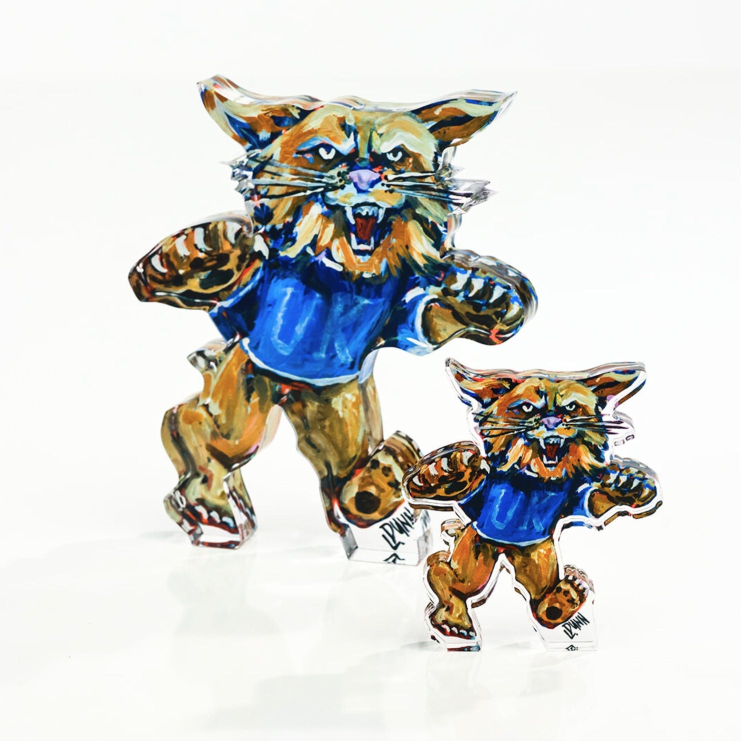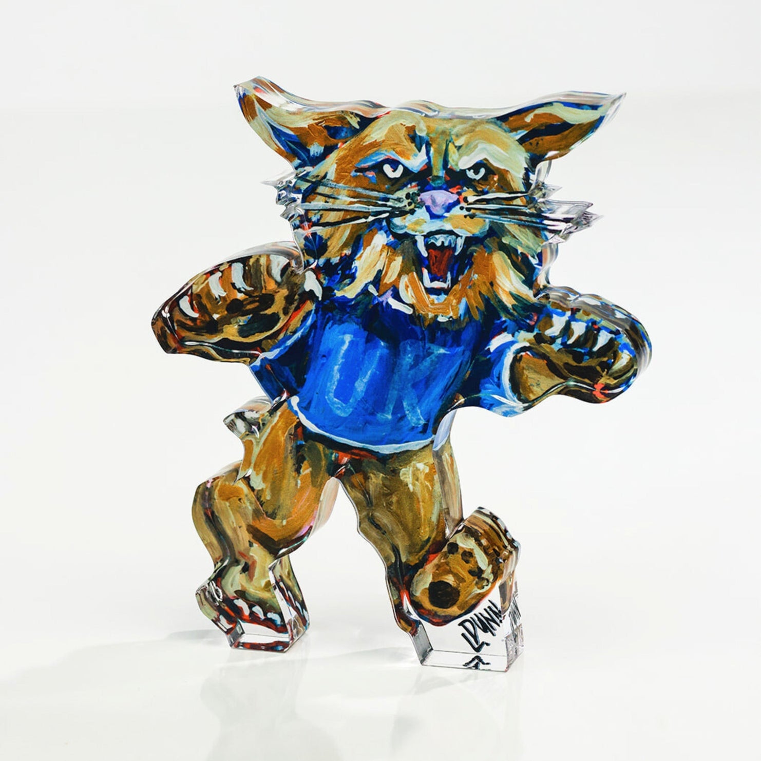 Celebrate your Kentucky pride with this bold, freestanding wildcat acrylic. Featuring original artwork inspired by the spirit and energy of the blue and white, this piece is a stylish nod to the teams, traditions, and hometown pride that run deep. A perfect addition to bookshelves, desks, dorm rooms, or gift baskets — and a spirited keepsake for fans, grads, or alumni.