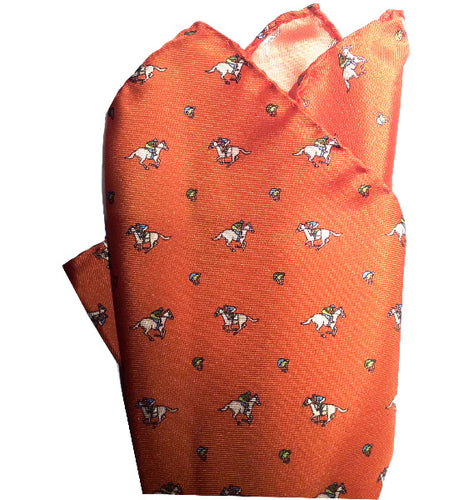 Riding Derby Italian Silk Pocket Square | Burnt Orange