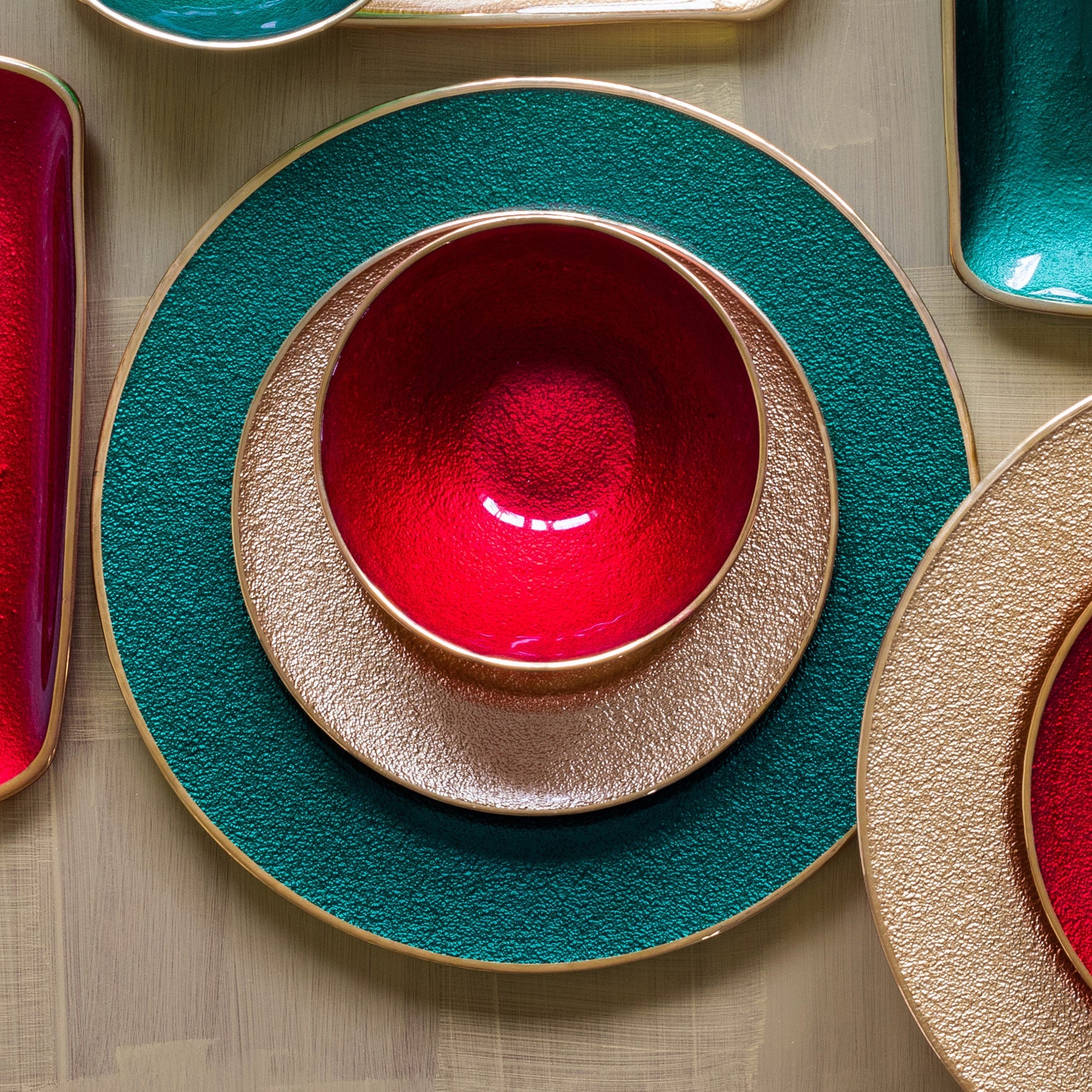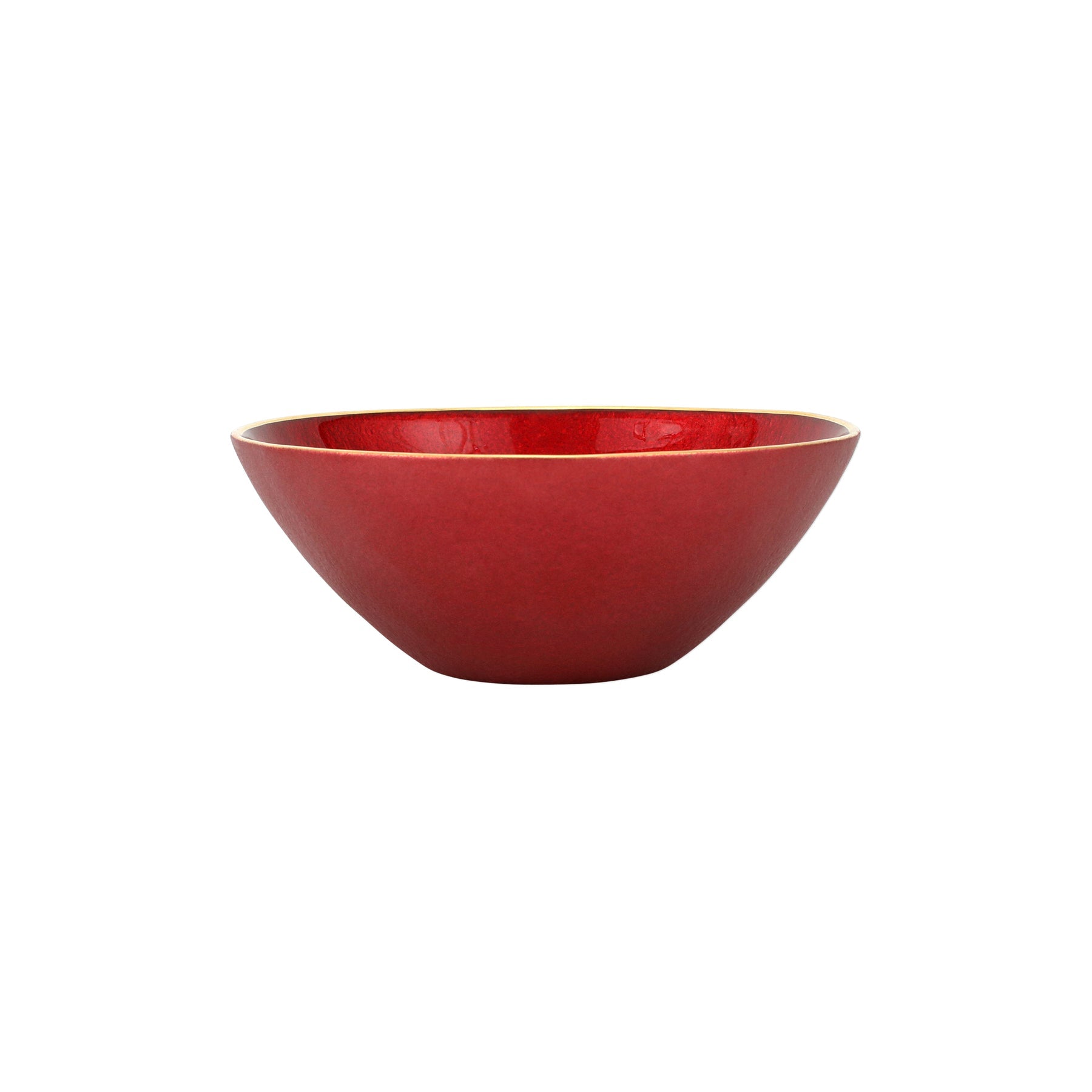 Metallic Glass is a dynamic collection that is at once timeless and modern. With a beautiful, molten effect, each piece is rimmed in gold and instantly elevates any table setting. The Metallic Glass Ruby Small Bowl exudes timeless glamour and is made to be mixed and matched with other Metallic Glass pieces.