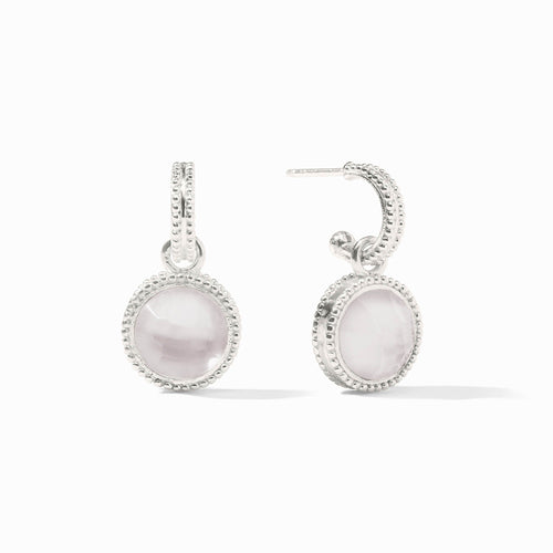Fleur-de-Lis Hoop & Charm Earring, Iridescent Crystal Clear | Silver