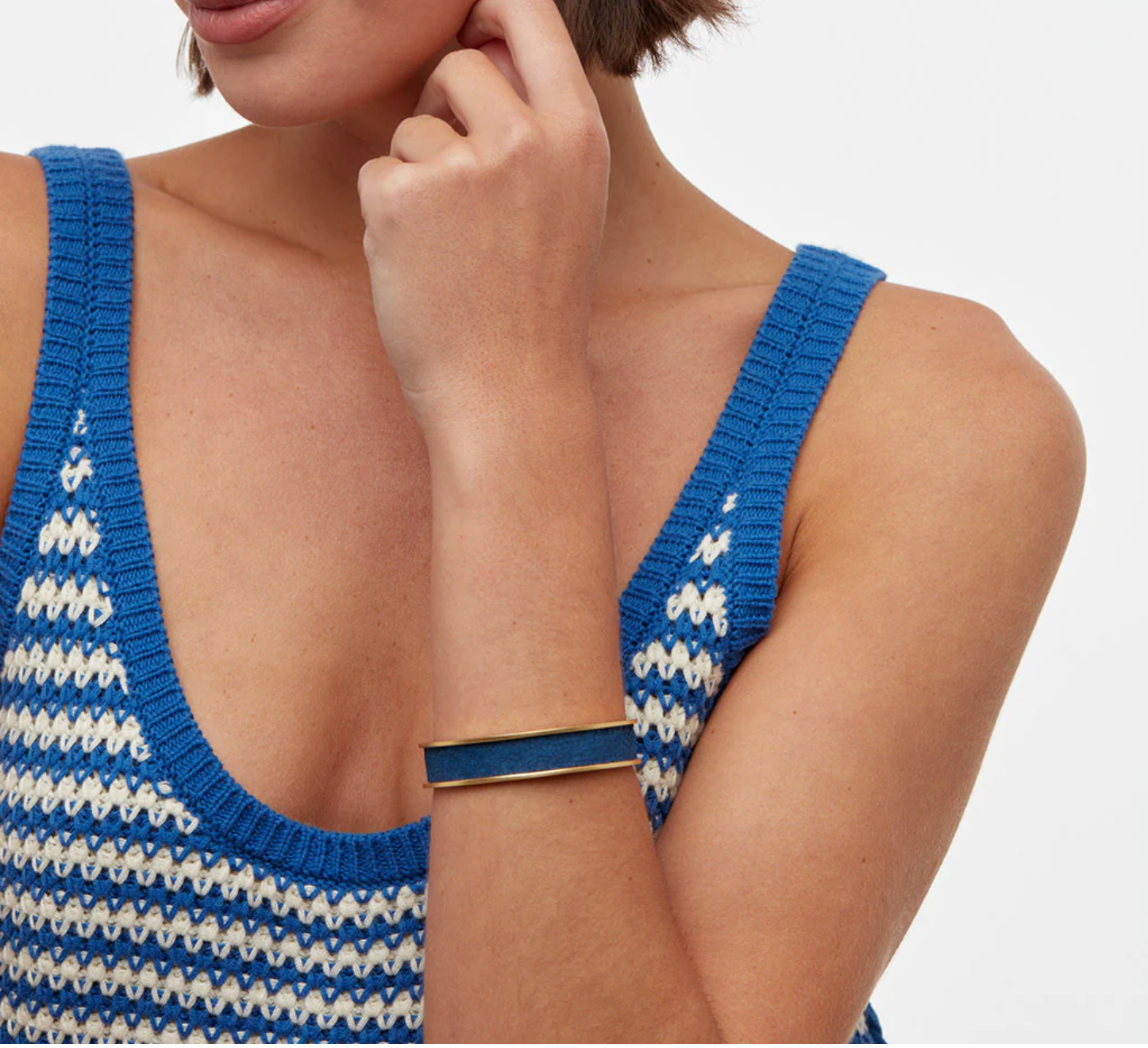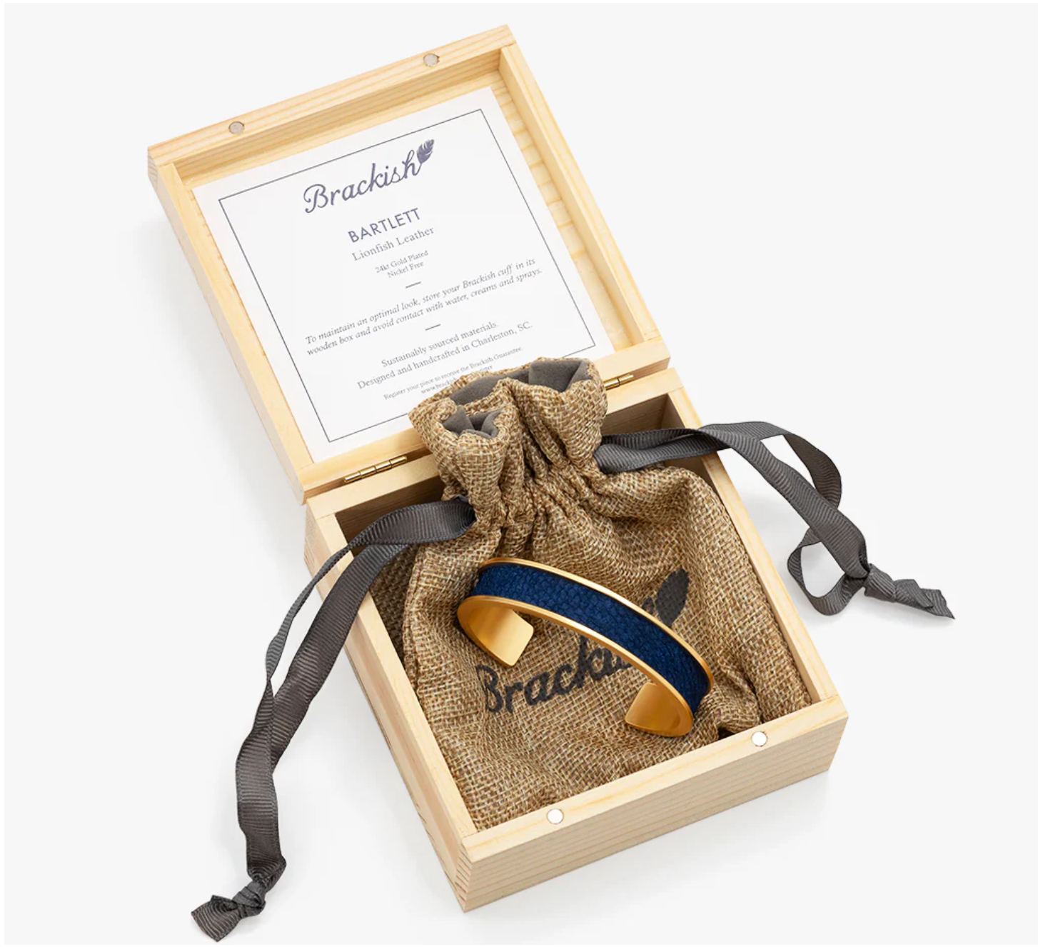 The Bartlett Thin Cuff boasts a rich, royal blue hue and a tonal, textural design that exudes subtle sophistication. Crafted from Invasive Lionfish Leather, sustainably sourced from INVERSA™ Leathers, this royal blue cuff bracelet will not only elevate your style but has a direct environmental impact.