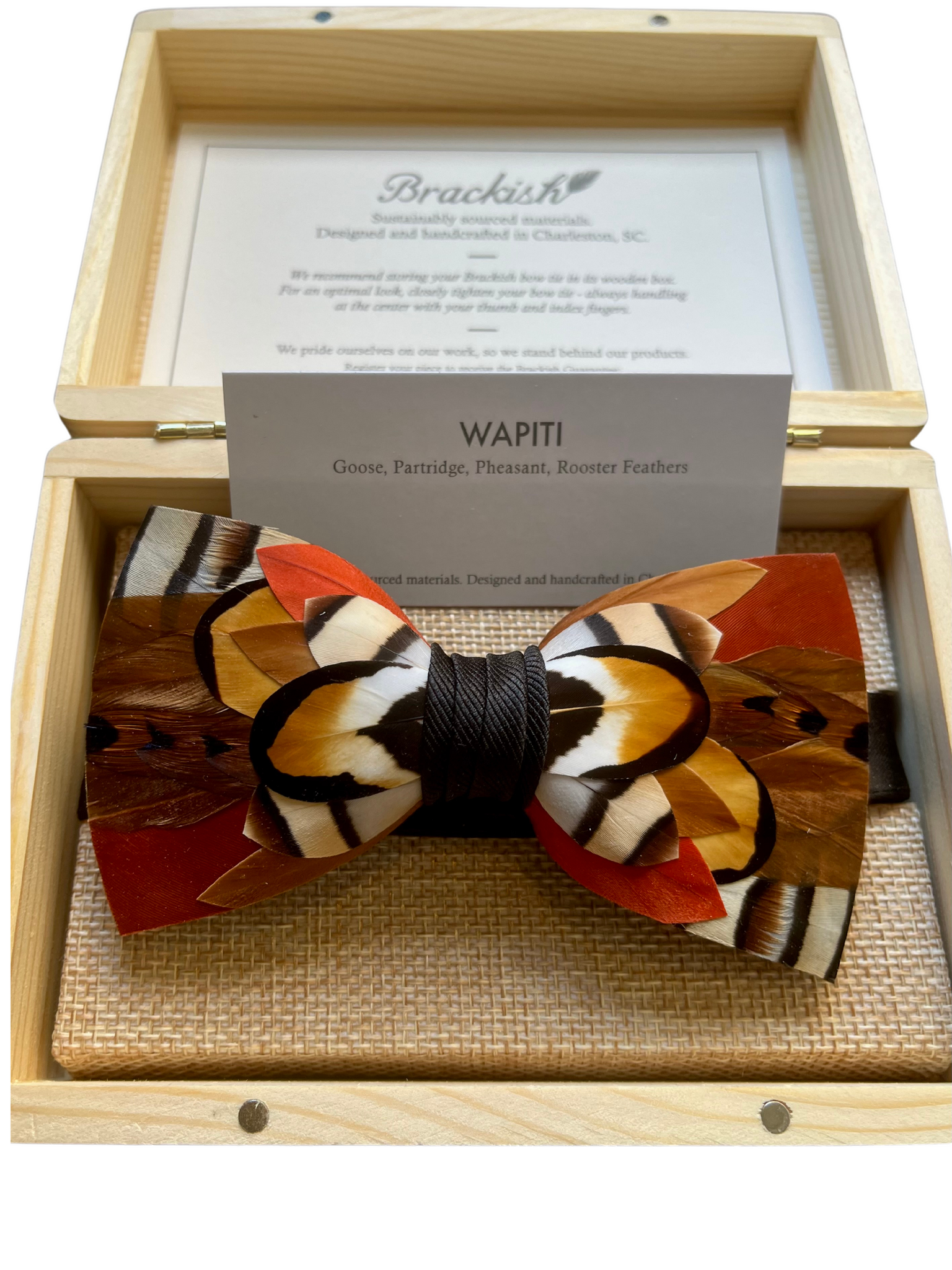 Wapiti is made with a dizzying array of goose, partridge, pheasant and rooster feathers. Center wrap is black grosgrain.