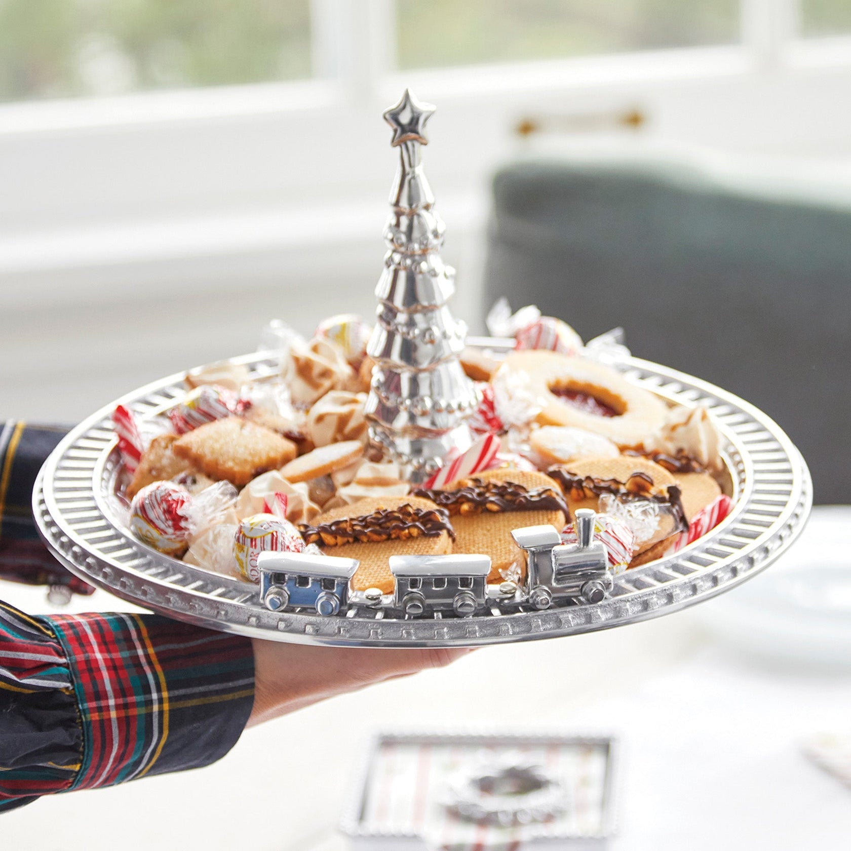 Let holiday treats surround a stately Christmas Tree, bordered by a train on the (working!) tracks. Sculptor Michael Updike created the playful Christmas Tree & Train Server years ago with his own young sons in mind.Dimensions: 13" L x 13" W x 8"H