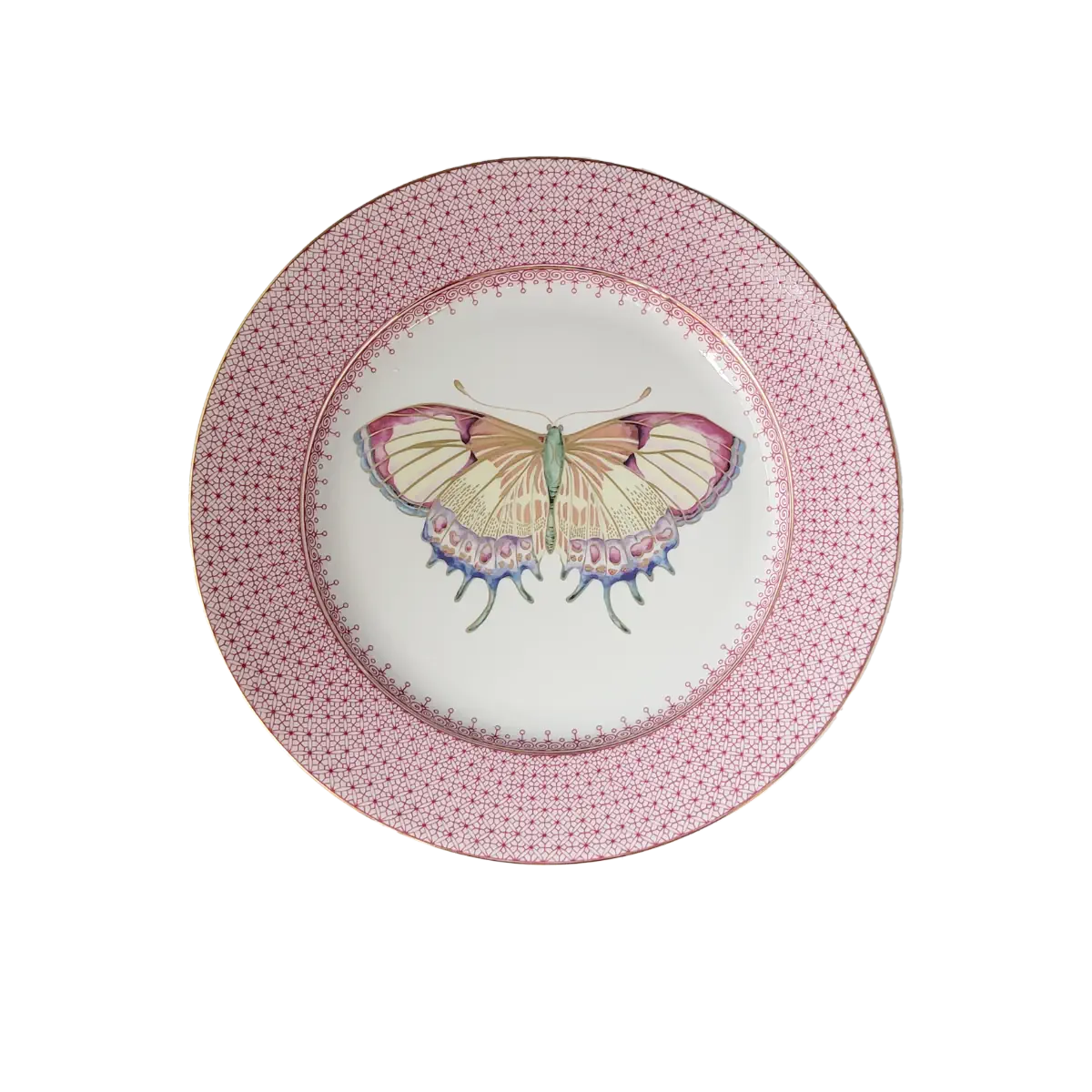 This gorgeous Lace dessert plate incorporates a colorful butterfly that coordinates with many patterns.