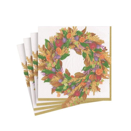 Autumn Wreath Paper Cocktail Napkins in Ivory, 20ct