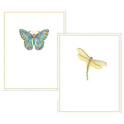 Jeweled Insects Foil Embossed Assorted Boxed Note Cards - 10 Note Cards & 10 Envelopes