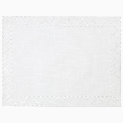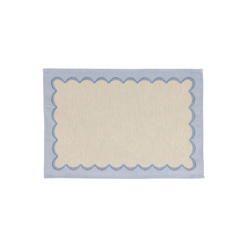 Linho Scalloped Rectangular Linen Mat, White & Green