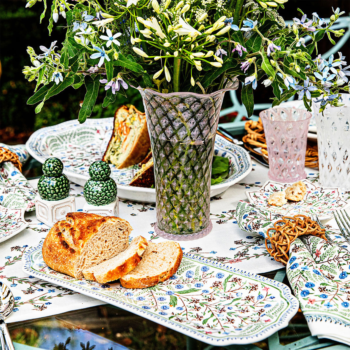 This undeniably romantic vase has a flared, feminine silhouette with a ruffled rim and our intricate, trellis motif in a blushing pink hue that sets off everything from formal floral arrangements to armfuls of garden flowers to utter perfection.
