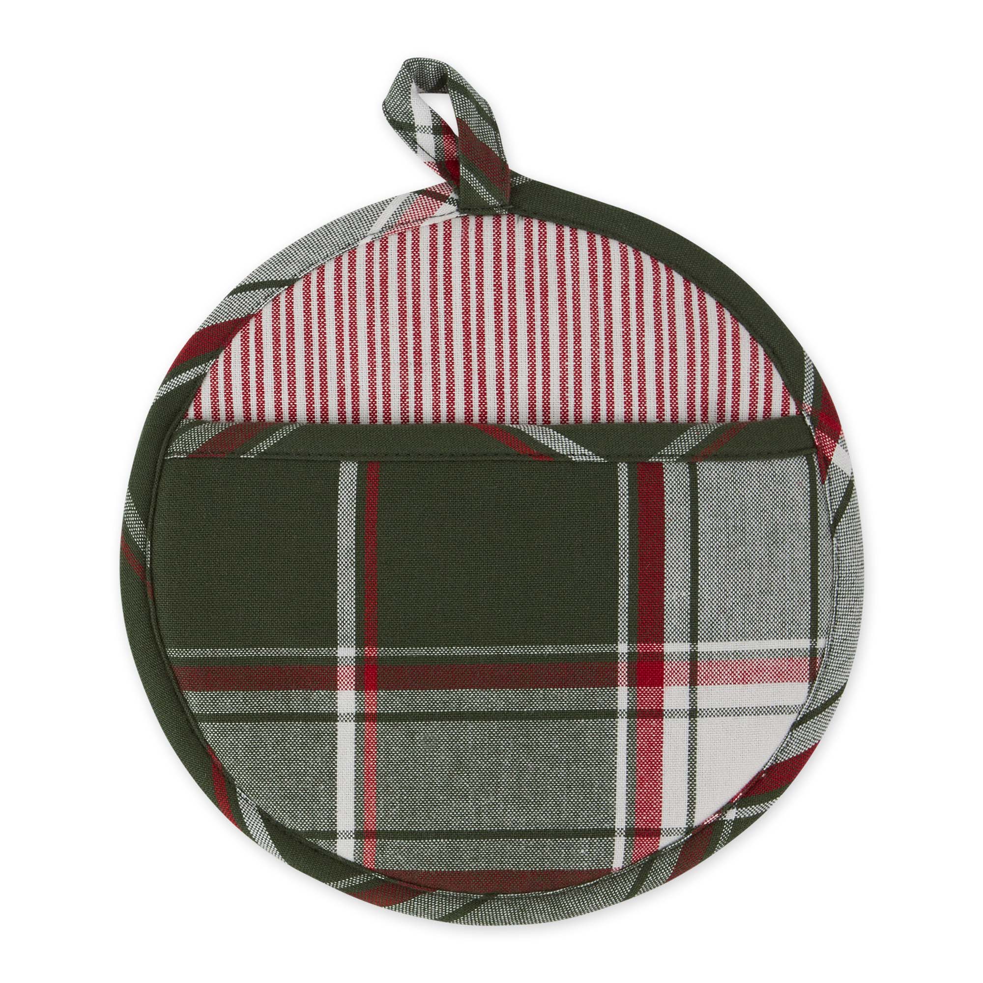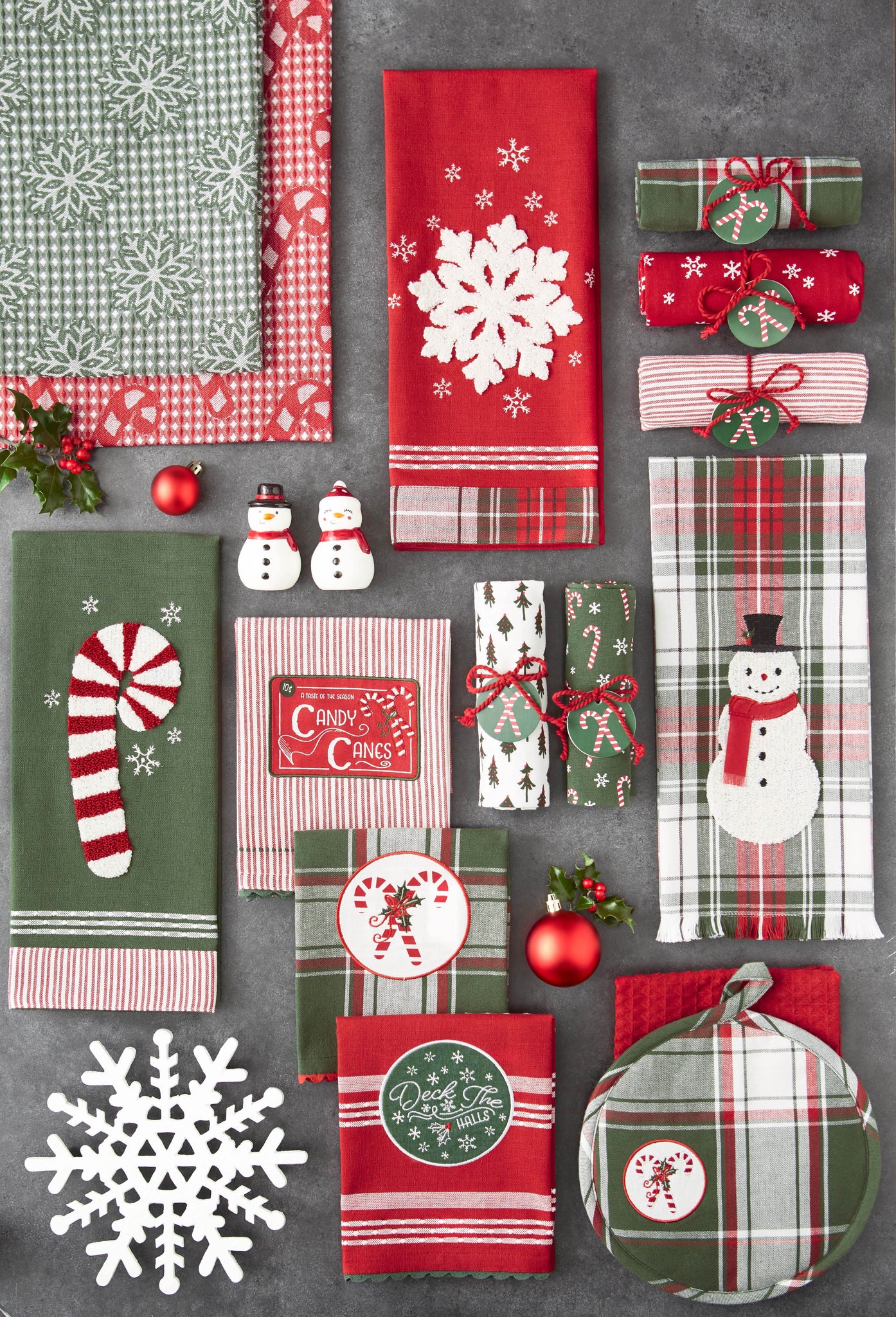 The Candy Cane Potholder Gift Set includes one waffle dishtowel folded inside an embellished potholder.