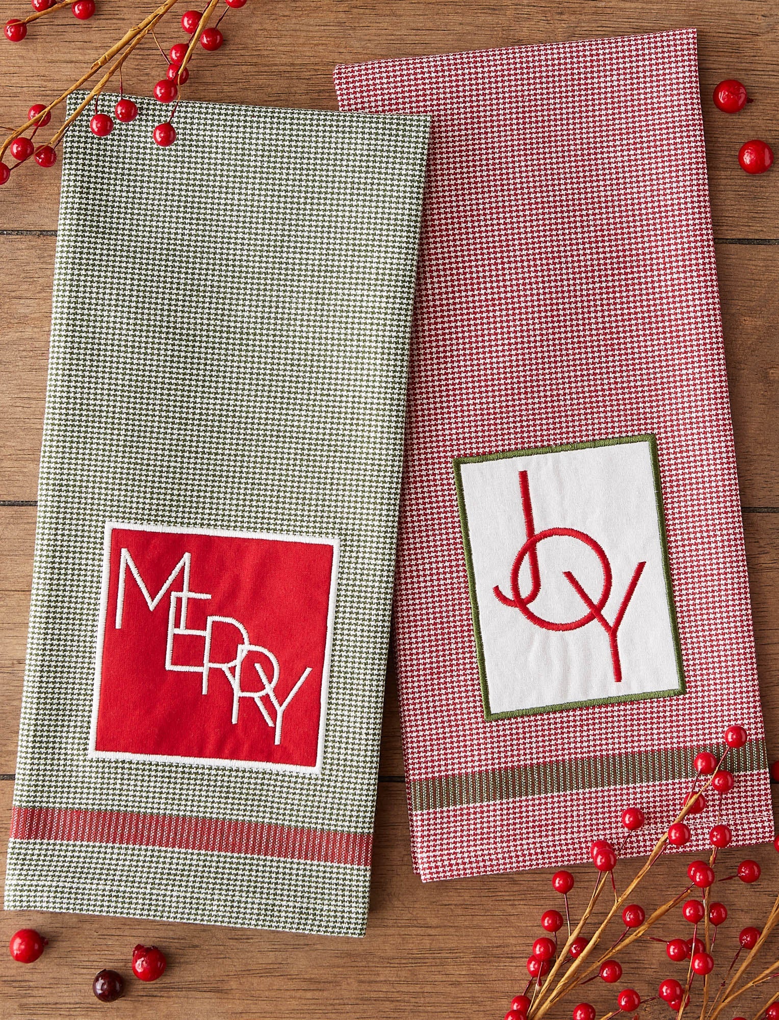 • Load image into Gallery viewer, Holiday Greetings Embellished Dishtowel, JOY
