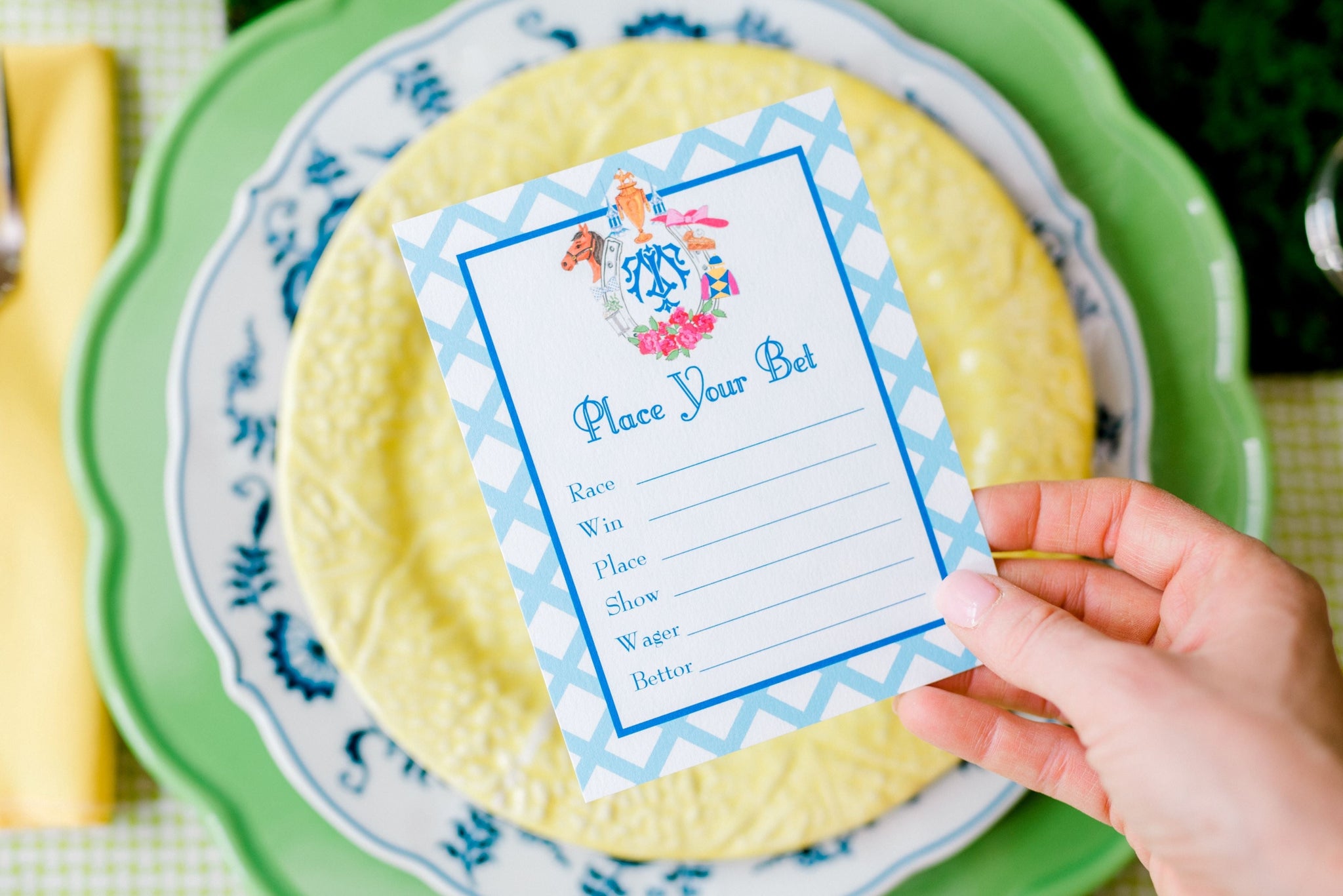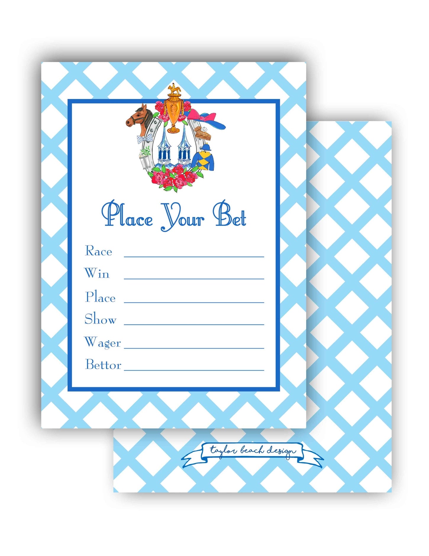 Win, Place or Show? These betting cards will be a hit at a Derby Party! Available in a set of 10 and measure 5.5" x 4" (flat cards). Printed on 120lb white stock. Packaged in a clear box.